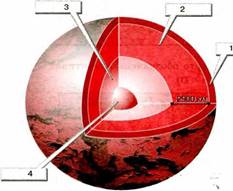 Какие элементы внутреннего строения Земли обозначены на рисунке цифрами?