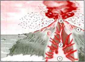 Определите, какая часть вулкана обозначена на рисунке цифрой 2 ?