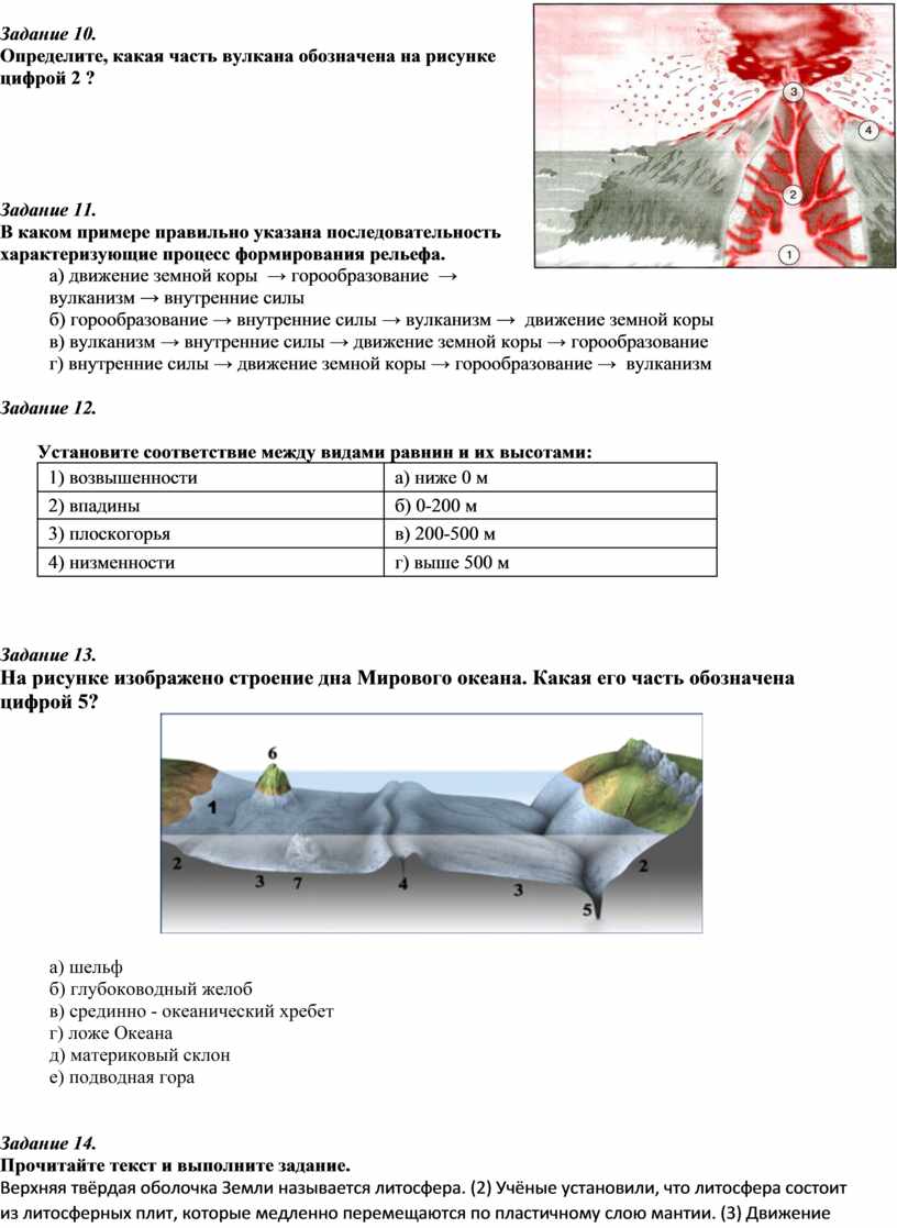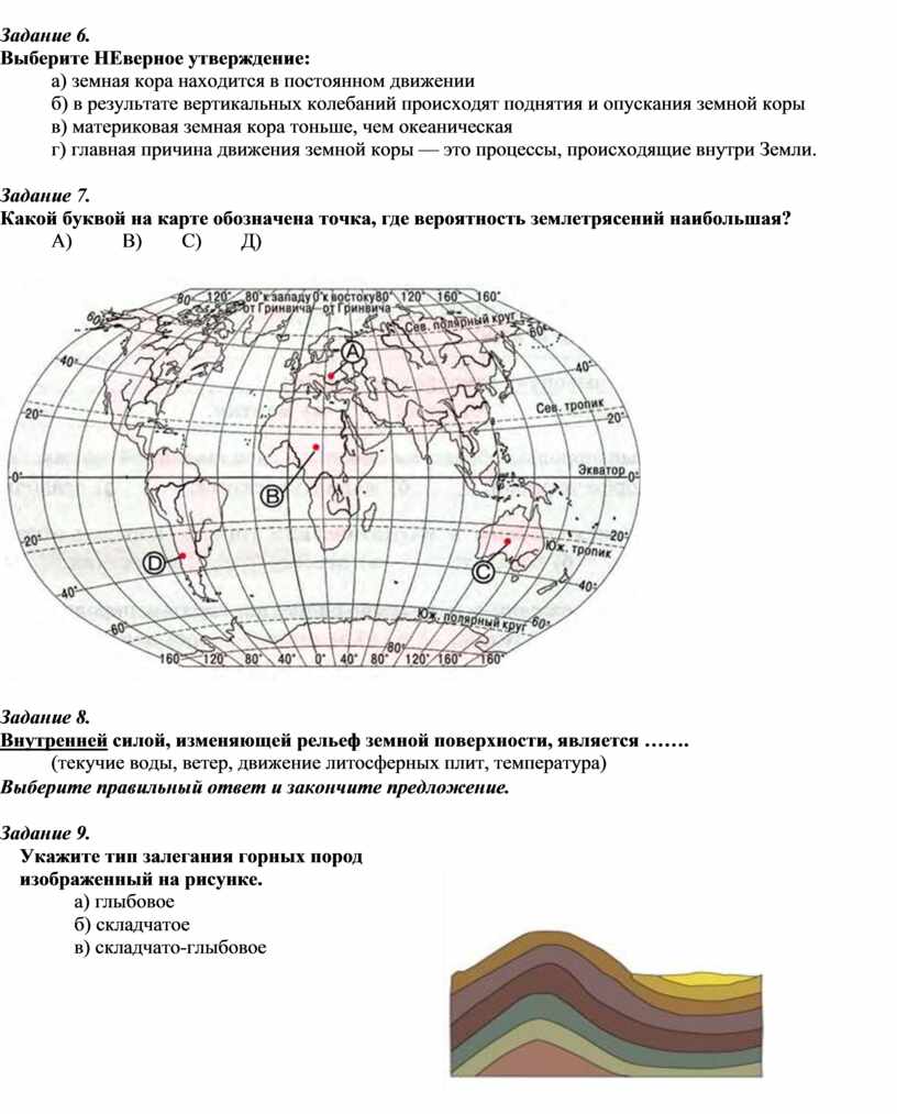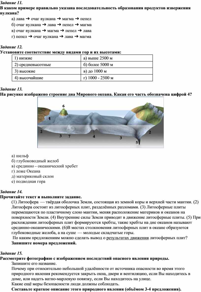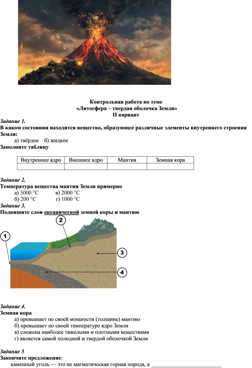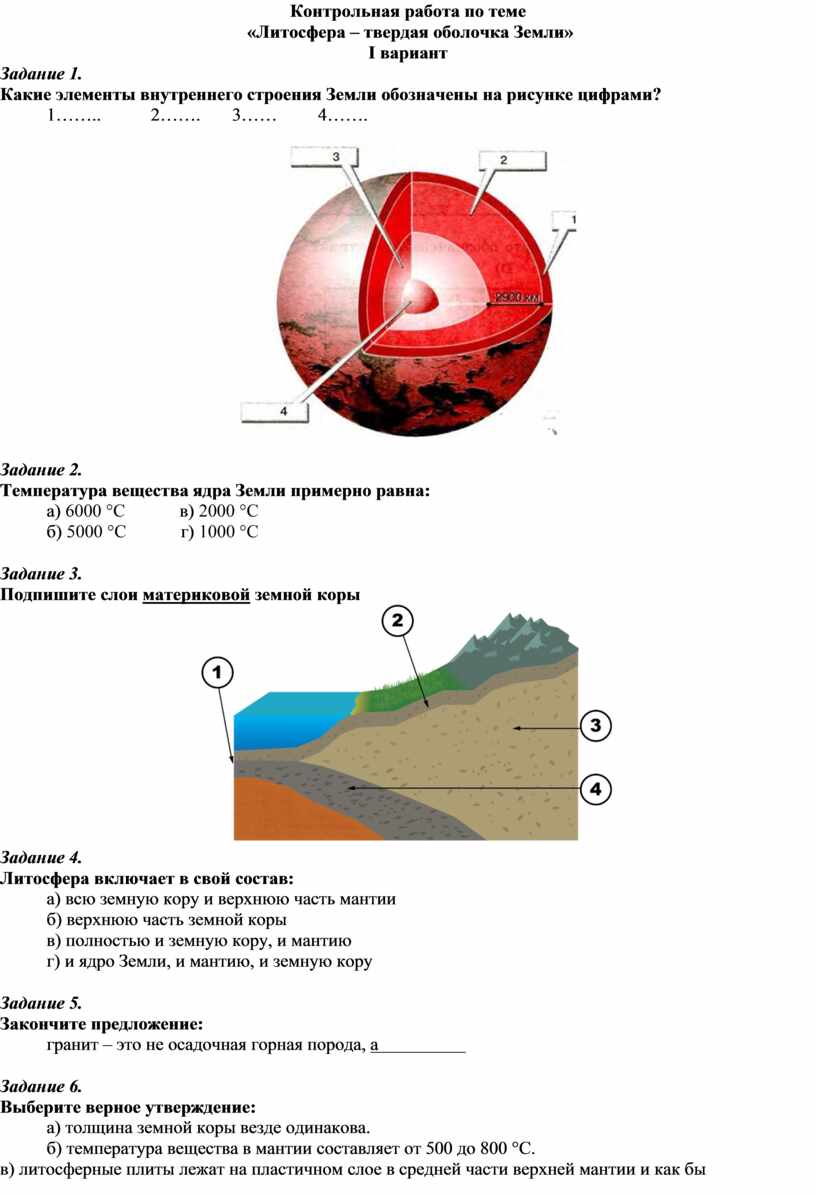 контрольной работы по теме «Литосфера – твёрдая оболочка Земли»