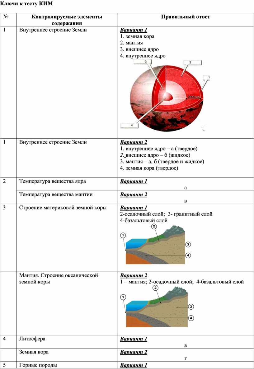 Вариант 1 1. земная кора 2. мантия 3. внешнее ядро 4. внутреннее ядро