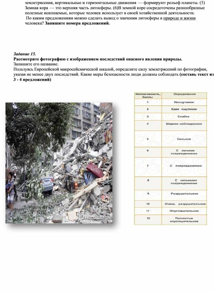 макросейсмической шкалой, определите силу землетрясений по фотографии, указав