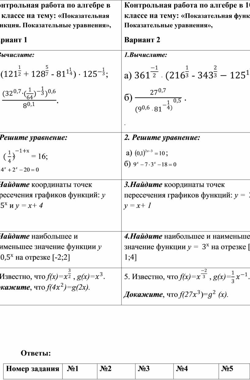 Контрольная работа по алгебре в 10 классе на тему: «Показательная функция. Показательные уравнения», Вариант 1 |