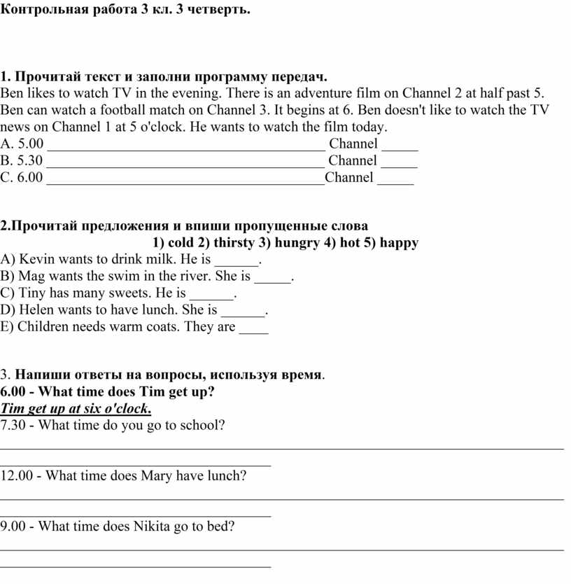 3. Напиши ответы на вопросы, используя время.