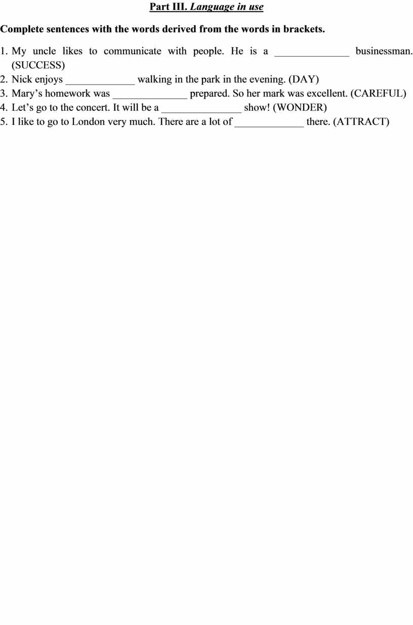 1- successful; 2 – daily; 3 – carefully; 4 – wonderful; 5 - attractions