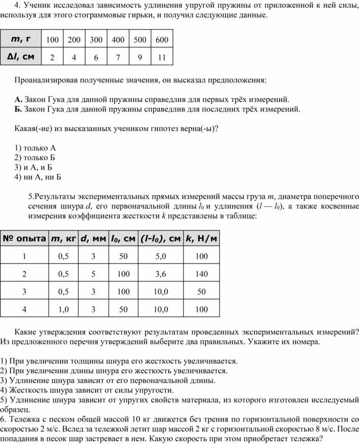 5) Удлинение шнура зависит от упругих свойств материала, из которого изготовлен исследуемый образец.