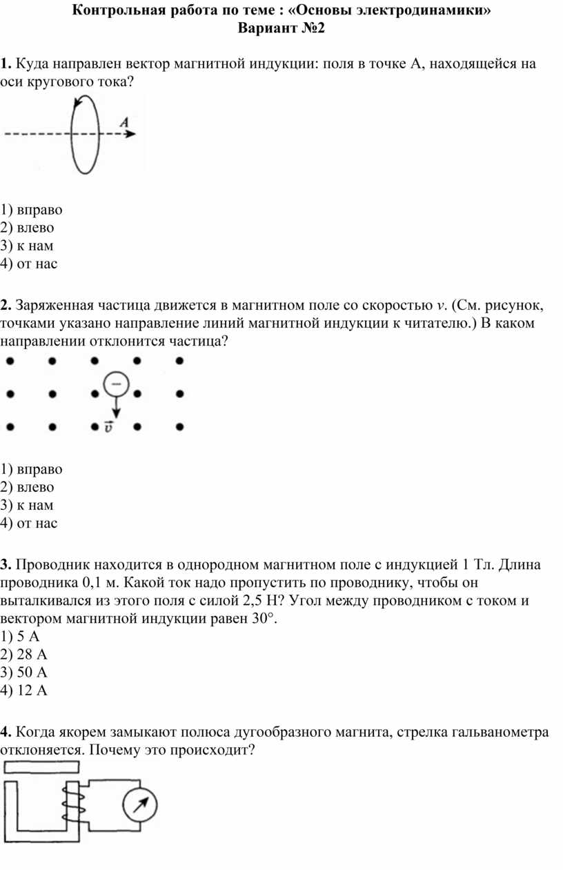 Контрольная работа по теме : «Основы электродинамики»
