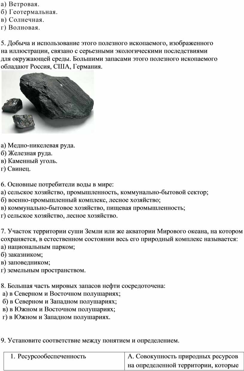 5. Добыча и использование этого полезного ископаемого, изображенного на иллюстрации, связано с серьезными экологическими последствиями для окружающей среды. Большими запасами этого полезного ископаемого обладают Россия, США, Германия.