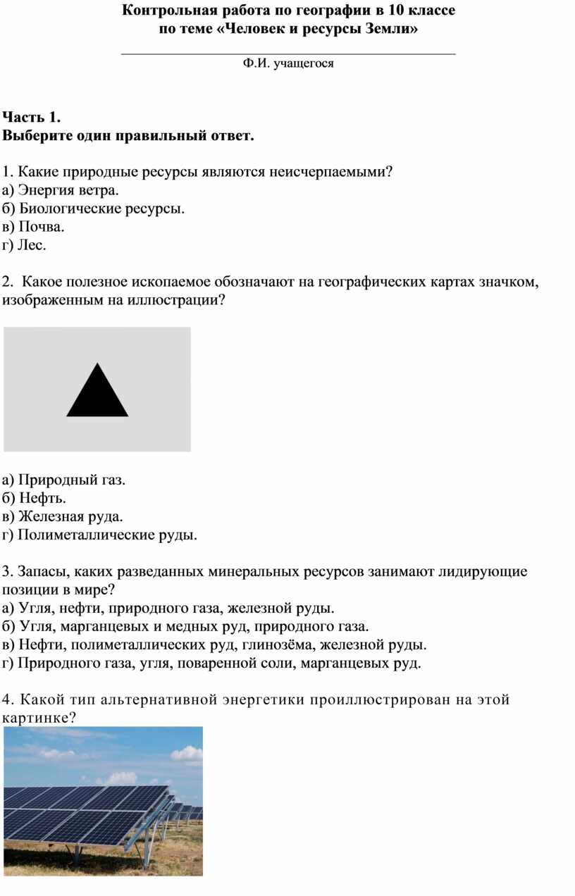 1. Какие природные ресурсы являются неисчерпаемыми?