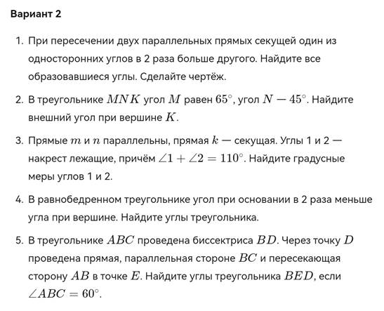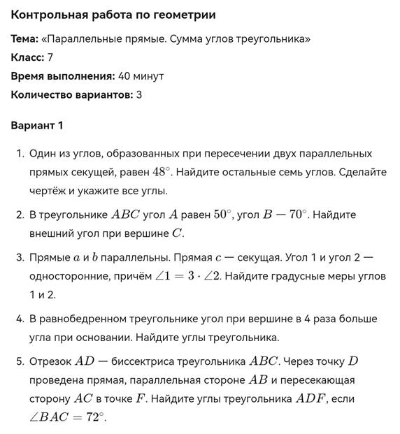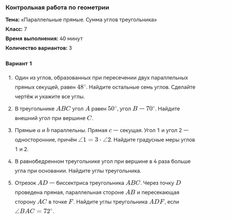 контрольная работа по геометрии 7 класс на тему Параллельные прямые.docx