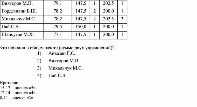 17. Ниже в табличной форме представлен фрагмент базы данных о результатах тестирования учащихся (используется стобалльная шкала):