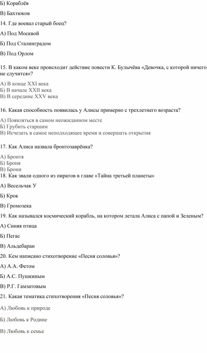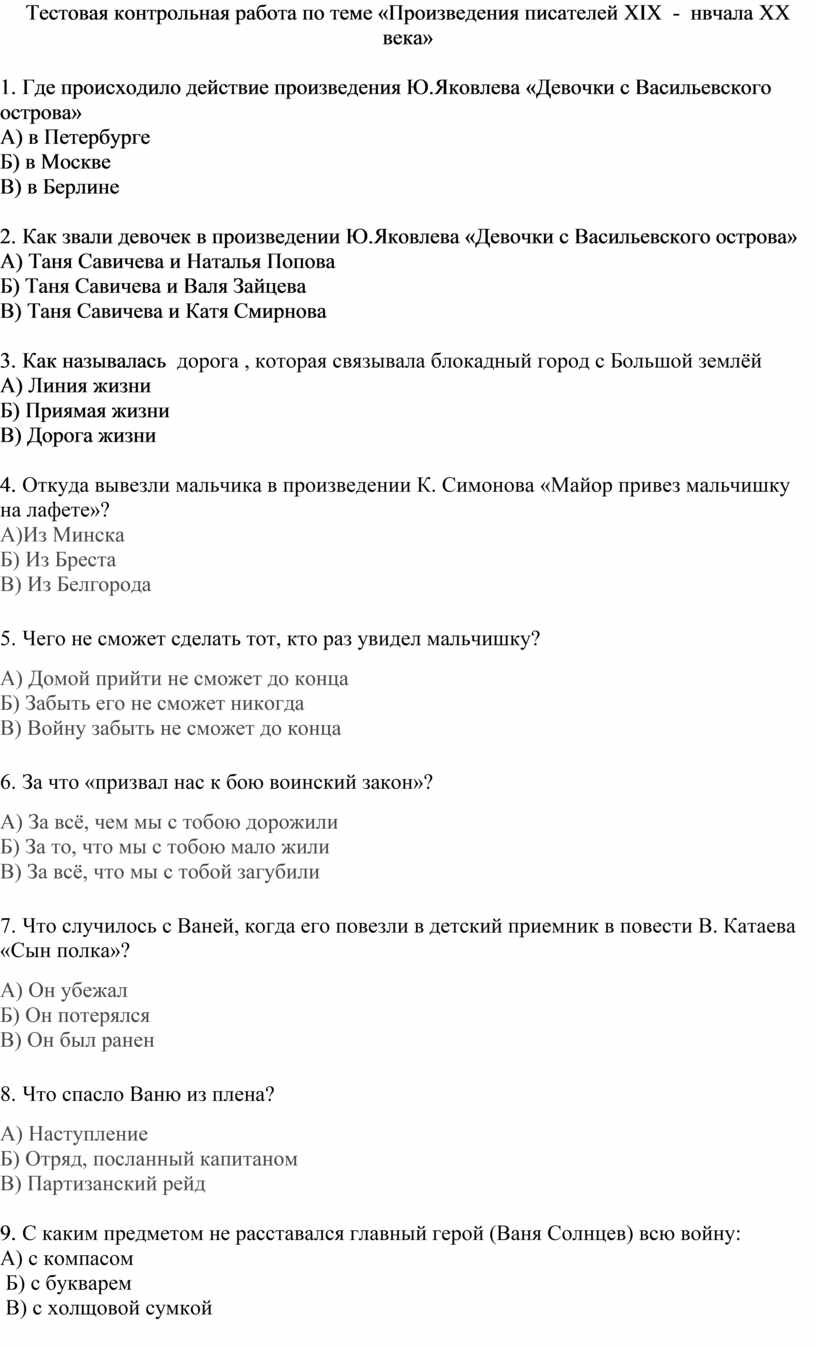 Тестовая контрольная работа по теме «Произведения писателей XIX - нвчала XX века»