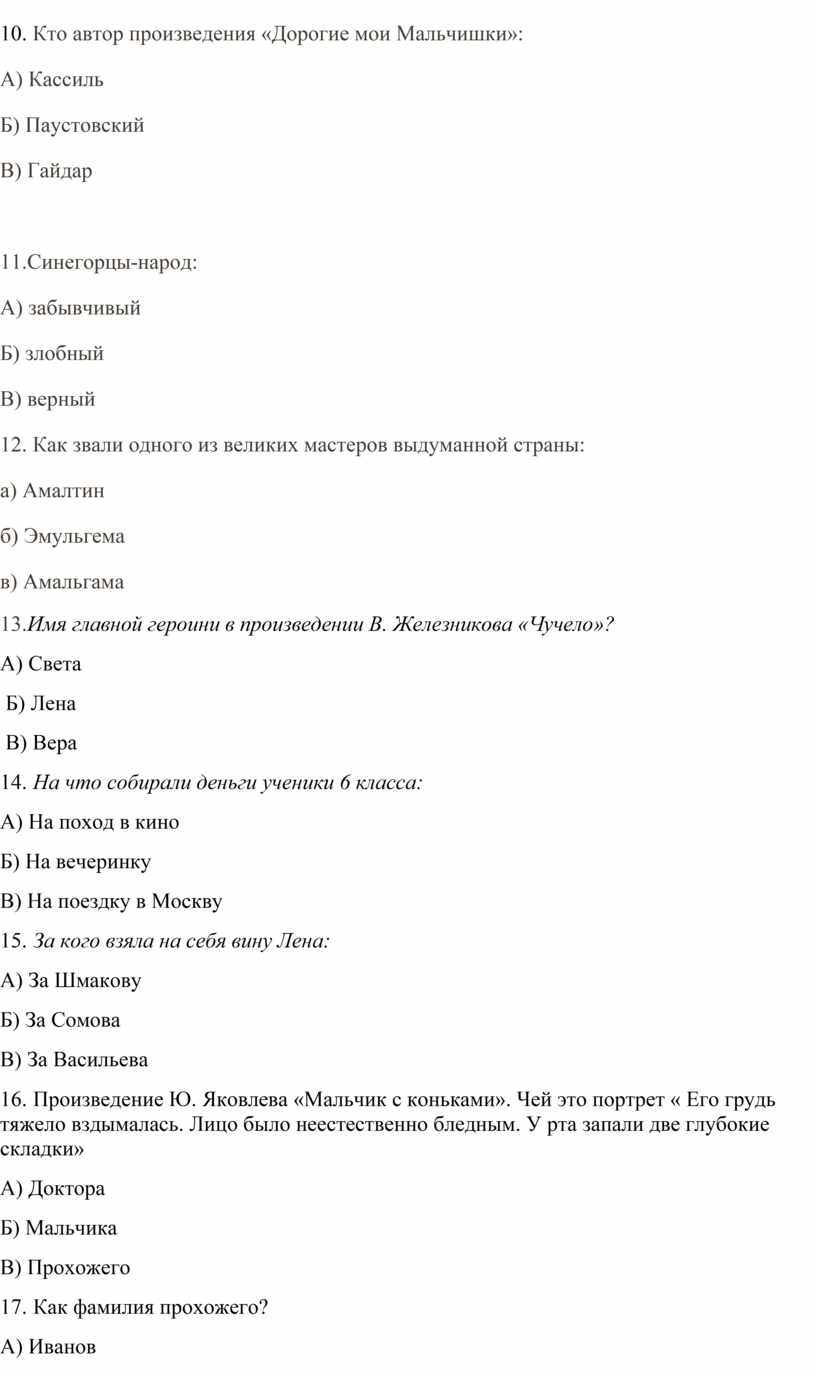 10. Кто автор произведения «Дорогие мои Мальчишки»: