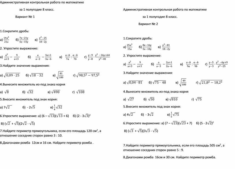 Административная контрольная работа по математике