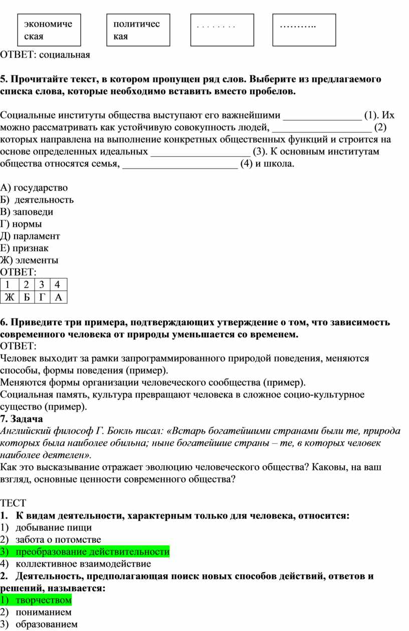 Тема «Общество» вариант 1