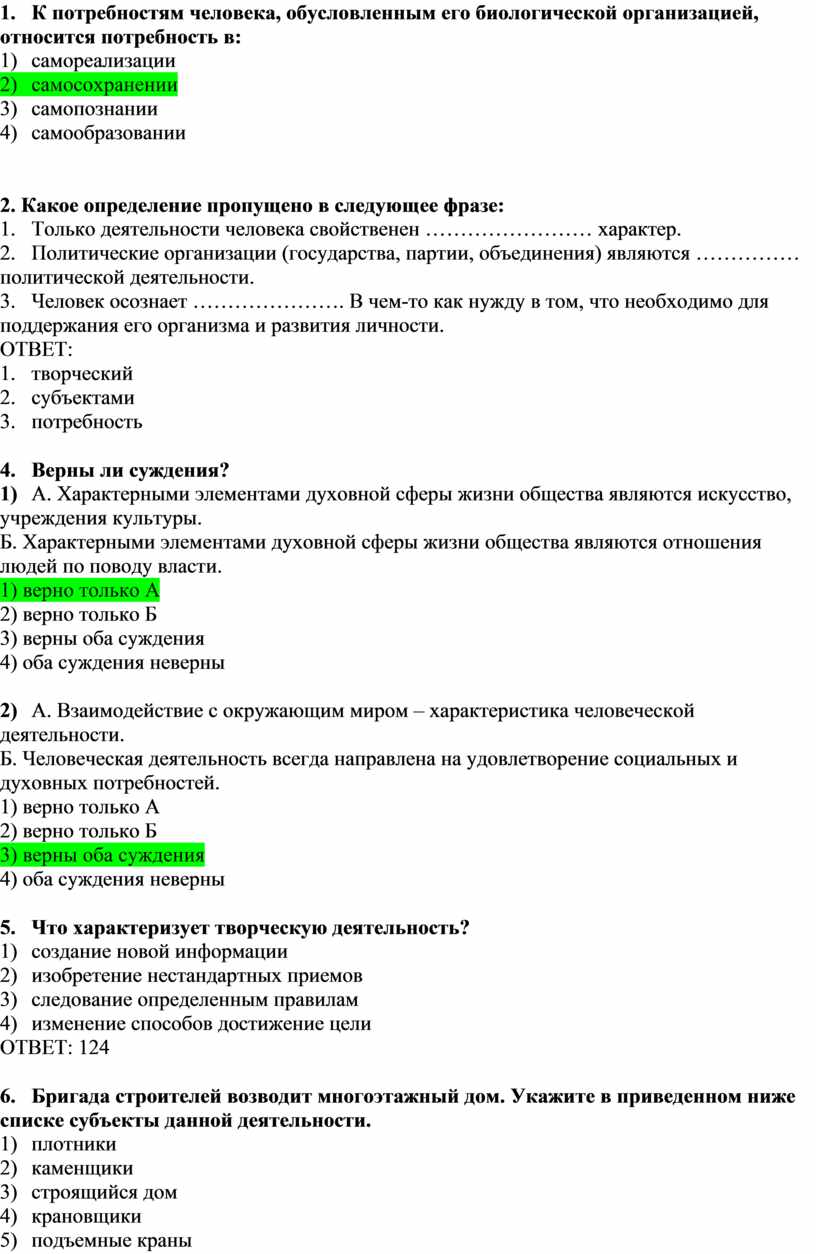1) А. Характерными элементами духовной сферы жизни общества являются искусство, учреждения культуры.