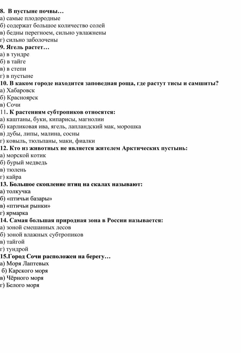 15. В какой последовательности сменяются природные зоны с севера на юг на территории нашей страны?