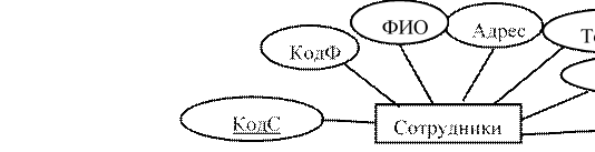Атрибуты: КодС код данного сотрудника; КодФ код филиала, в котором работает данный сотрудник; Адрес адрес данного сотрудника; Должность должность данного сотрудника; Телефон телефон данного сотрудника; ФИО фамилия, имя, отчество данного сотрудника; Город город, где работает данный сотрудник;
