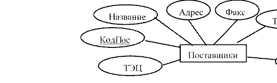Атрибуты: КодПос код данного поставщика; Название название данного поставщика; Адрес адрес данного поставщика; Факс факс данного поставщика; Город город, где находится данный поставщик; Телефон телефон данного поставщика, ТЭЦ – внешний вид предприятия.