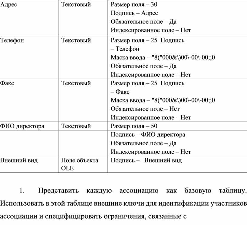 - для каждого объекта выявить свойства и характеристики, по которым создаются поля таблиц;