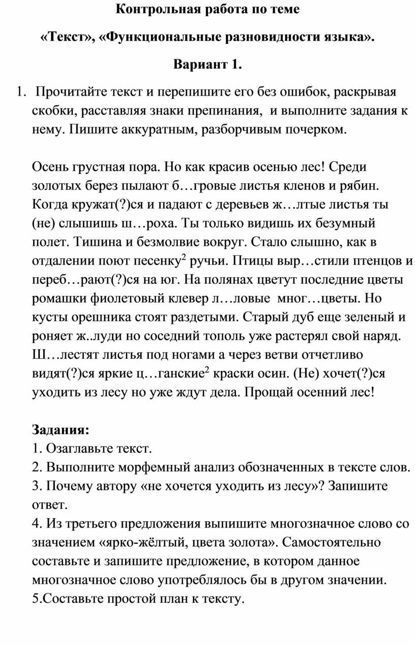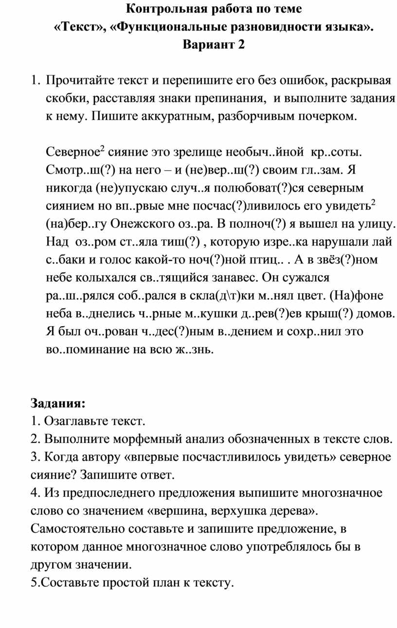 1. Прочитайте текст и перепишите его без ошибок, раскрывая скобки, расставляя знаки препинания, и выполните задания к нему. Пишите аккуратным, разборчивым почерком.