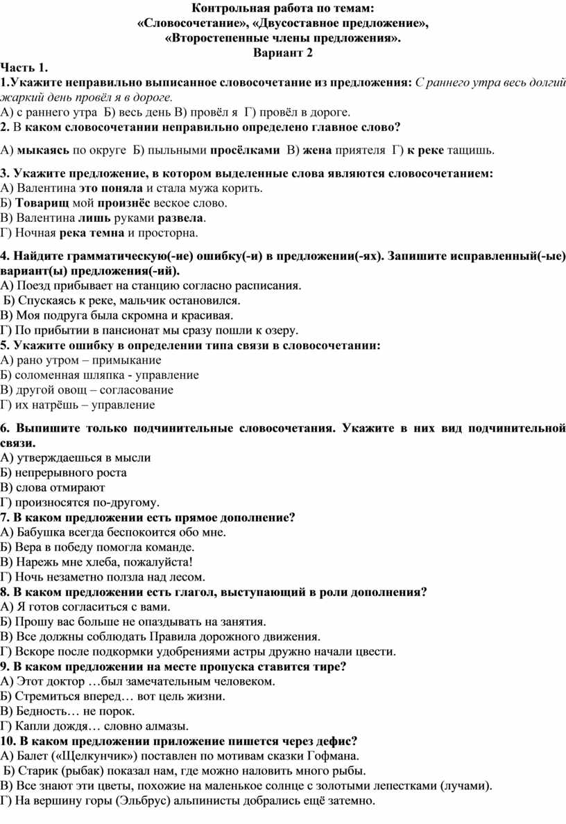 1.Укажите неправильно выписанное словосочетание из предложения: С раннего утра весь долгий жаркий день провёл я в дороге.