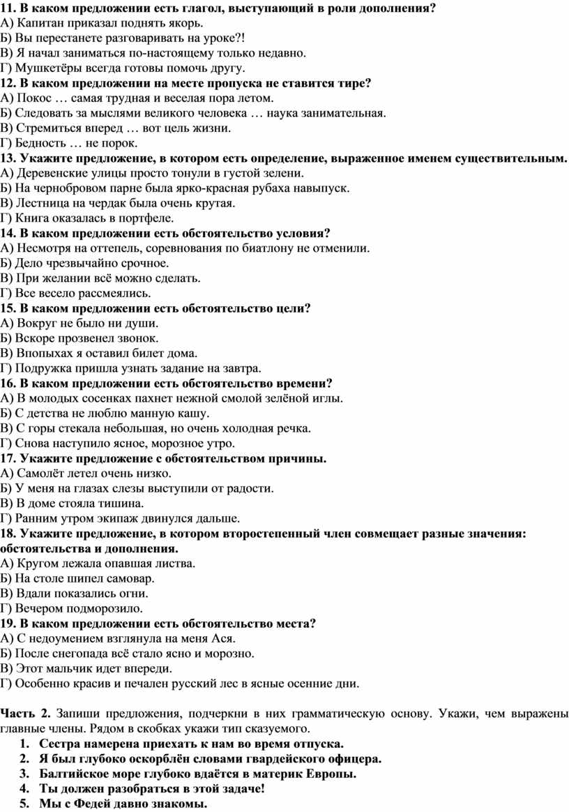 18. Укажите предложение, в котором второстепенный член совмещает разные значения: обстоятельства и дополнения.