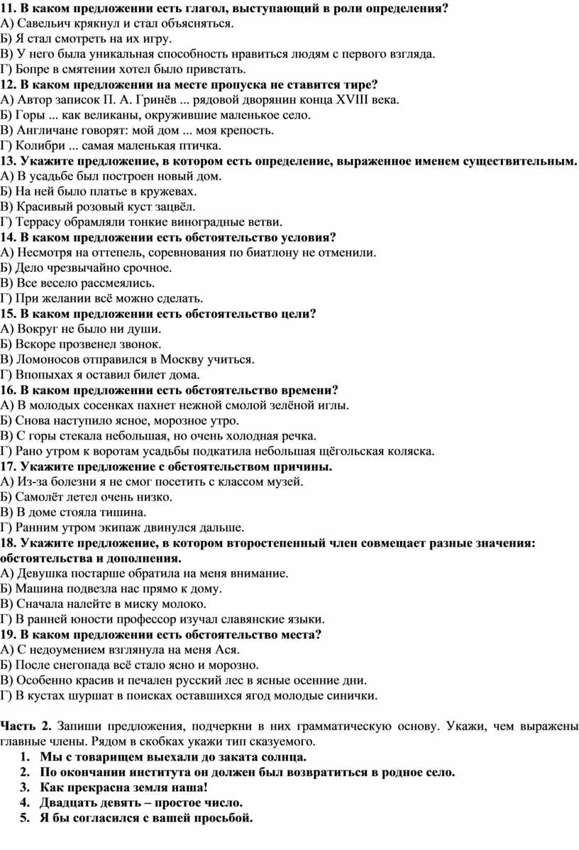 11. В каком предложении есть глагол, выступающий в роли определения?