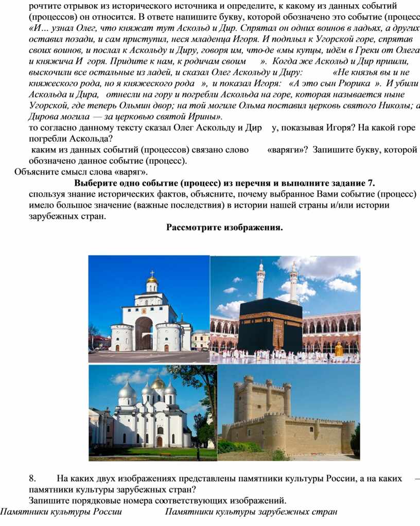 8. На каких двух изображениях представлены памятники культуры России, а на каких – памятники культуры зарубежных стран?