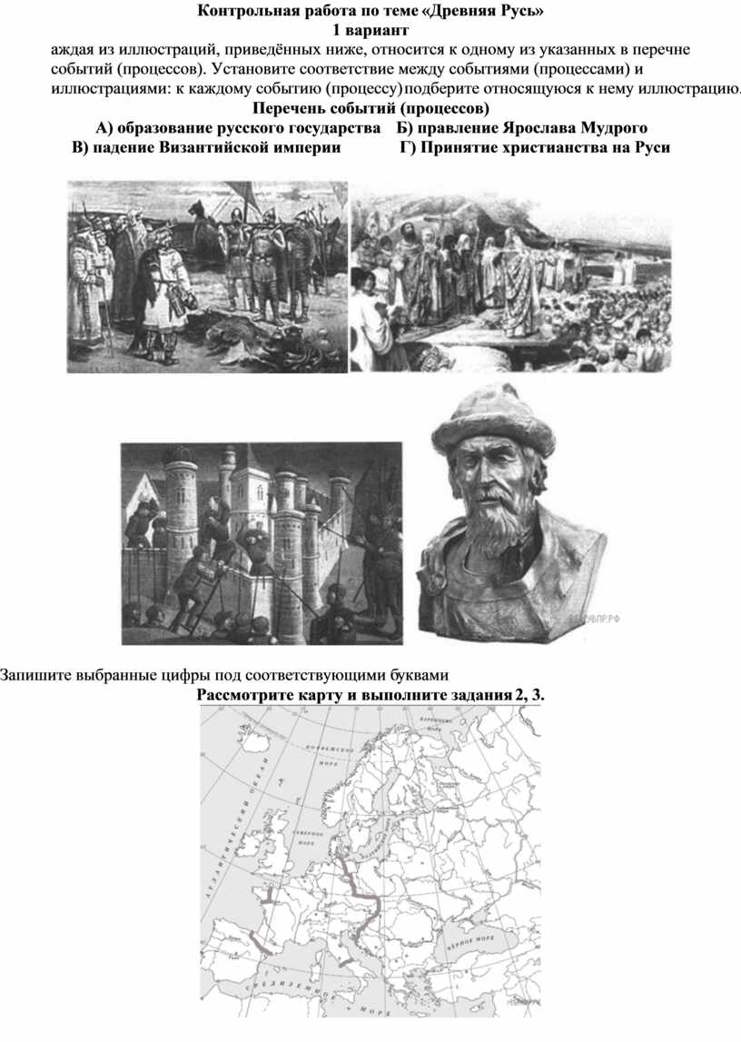 В) падение Византийской империи Г) Принятие христианства на Руси