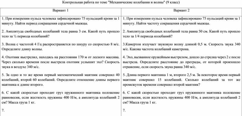 Контрольная работа по теме "Механические колебания и волны" (9 класс)