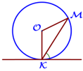 №2) Прямая касается окружности в точке К. Точка О - центр окружности. Хорда КМ образует с касательной угол, равный 69°. Найдите величину угла КОМ. Ответ дайте в градусах.
