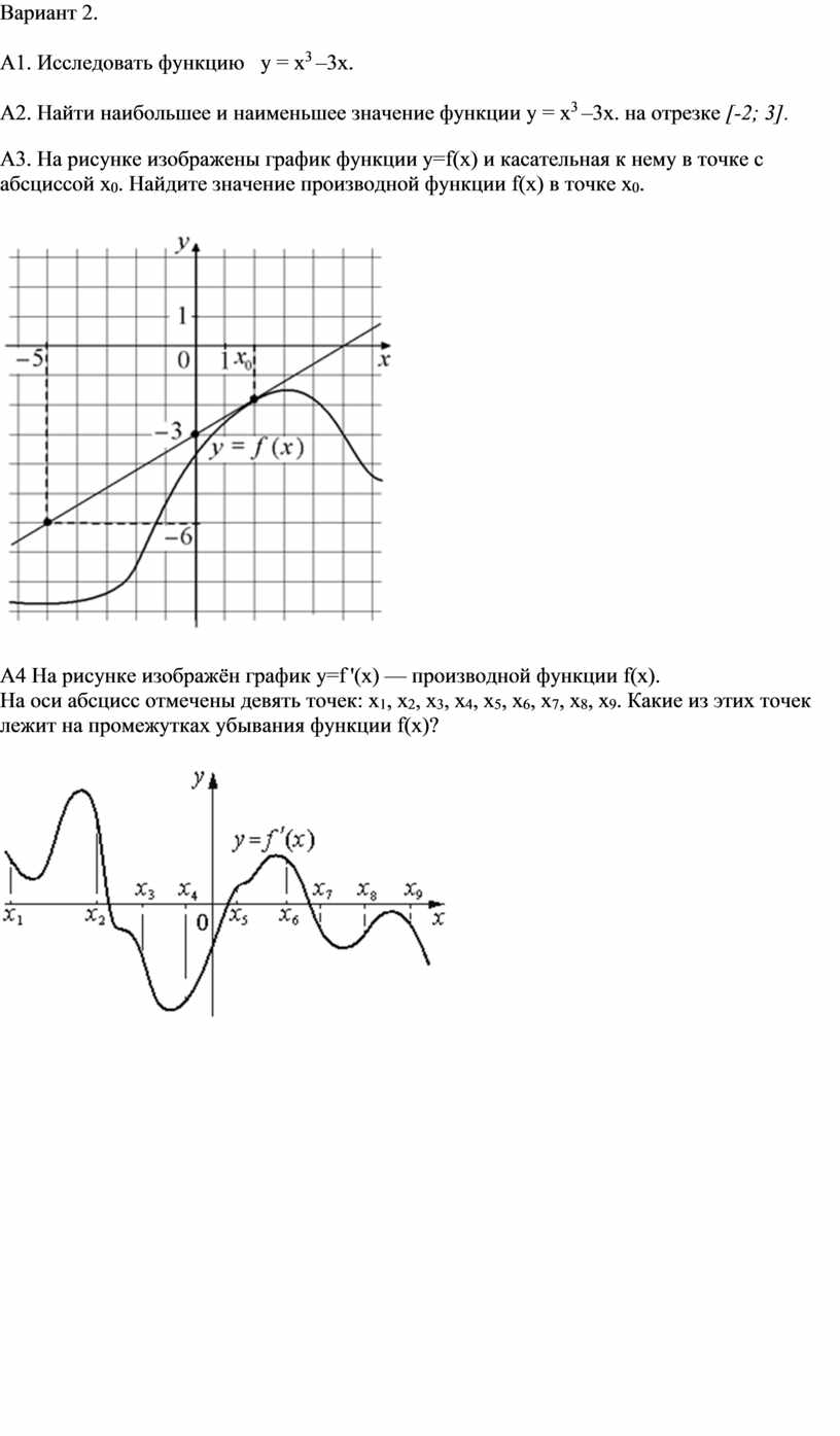 А3. На рисунке изображены график функции y=f(x) и касательная к нему в точке с абсциссой x0. Найдите значение производной функции f(x) в точке x0.
