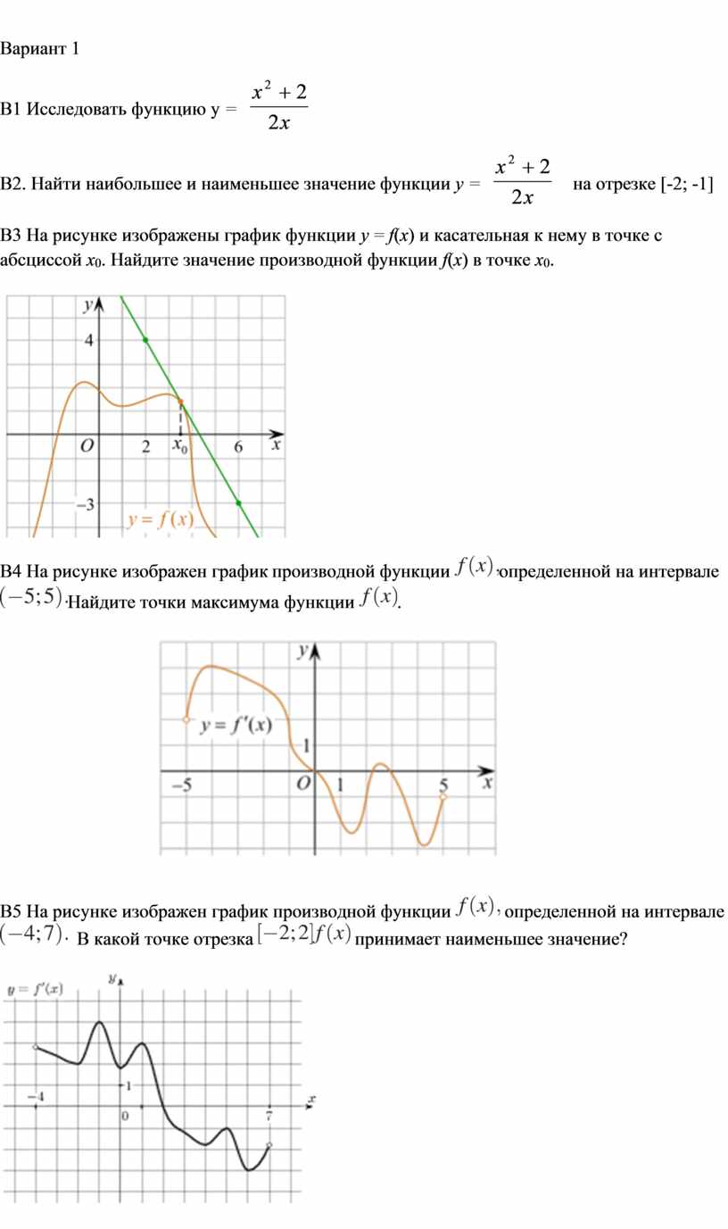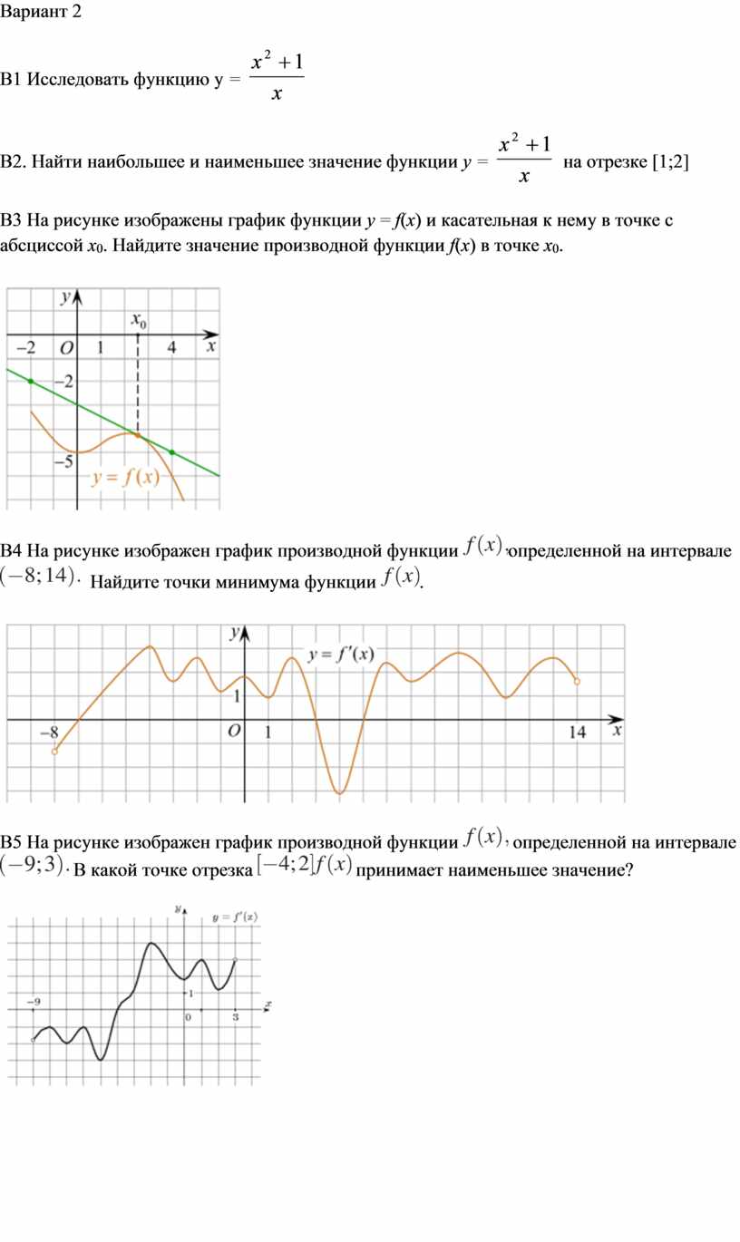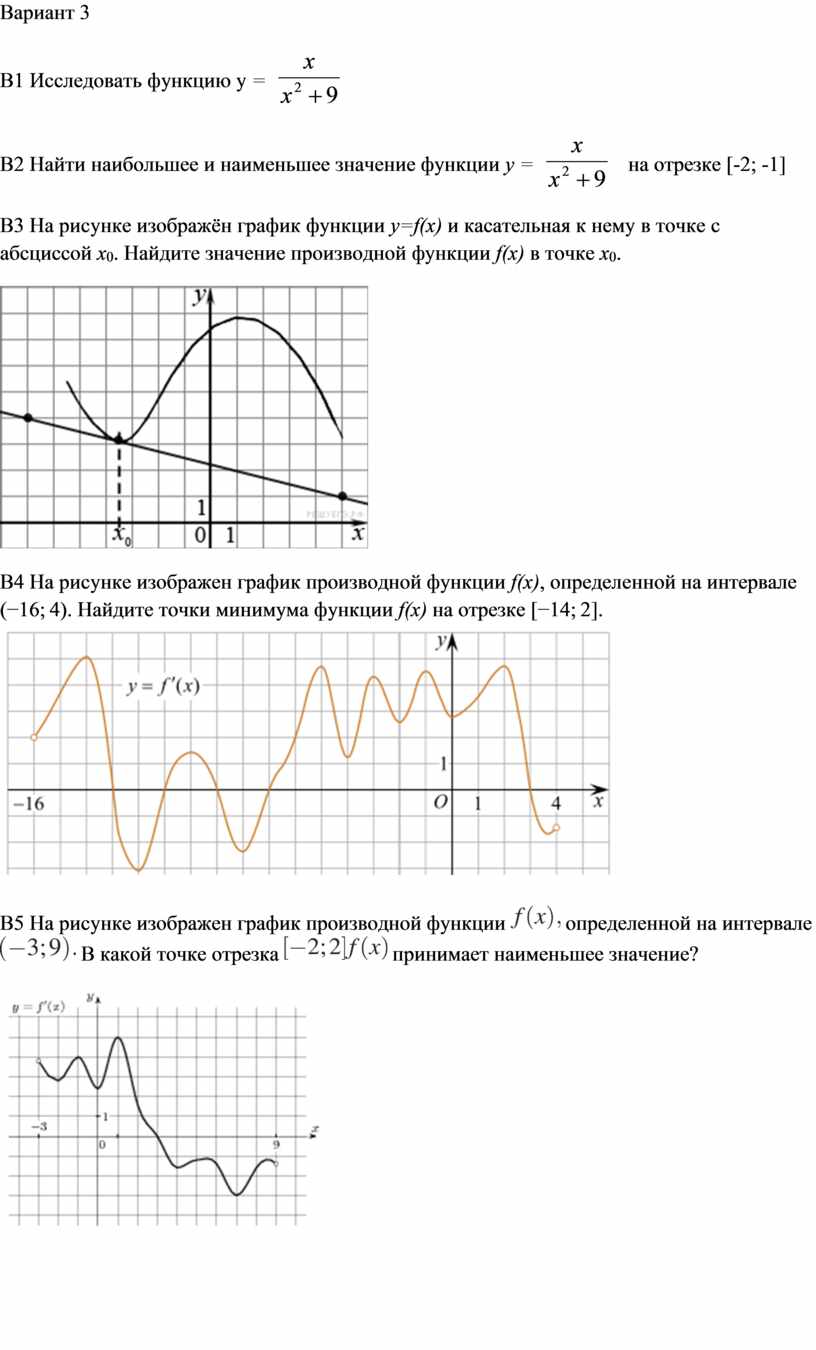 В3 На рисунке изображены график функции y = f(x) и касательная к нему в точке с абсциссой x0. Найдите значение производной функции f(x) в точке x0.