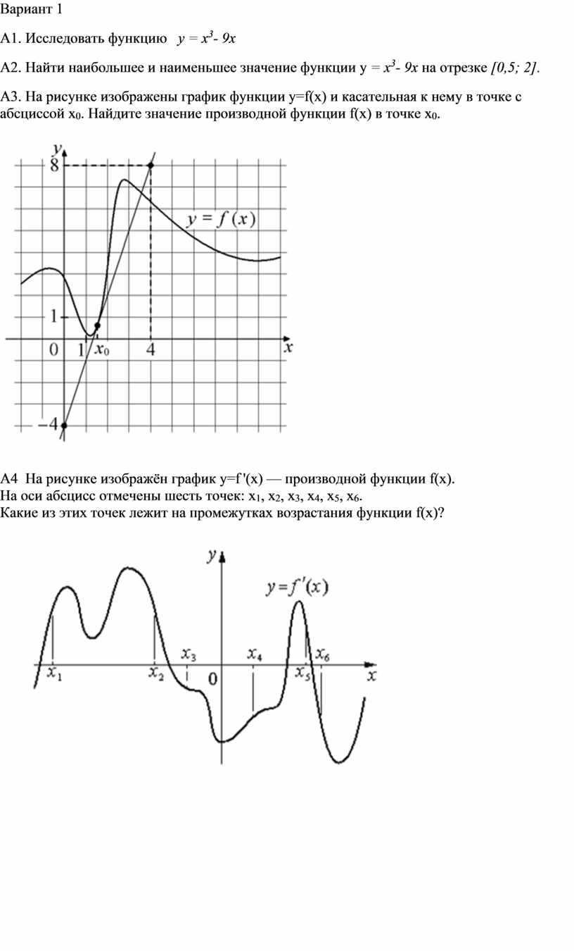 А2. Найти наибольшее и наименьшее значение функции у = х3- 9х на отрезке [0,5; 2].