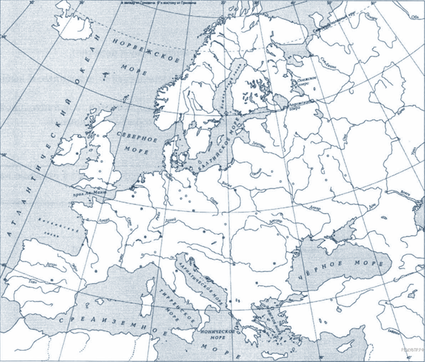 2. Заштрихуйте на контурной карте один четырёхугольник, образованный градусной сеткой, в котором полностью или частично происходило выбранное Вами событие (процесс).