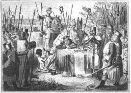 «На рассвете в субботу начали выступать половецкие полки, точно дикие кабаны; и князья русские дивились, кому из них на какой полк поехать, потому что их было бесчисленное множество. И сказал Игорь: „Вот, должно быть, собрали мы на себя всю землю половецкую: Кончака, и Козу Бурновича, и Токсобича Колобича, и Етебича, и Терьтробича“. И посоветовались, слезли с коней, хотели они с боем дойти до реки Донца, а говорили: „Если побежим, убежим сами, а простых людей оставим, то будет нам грех, что их выдали врагам; или умрём, или живы будем вместе“. И сказав так, слезли с коней и пошли сражаясь. И так сражались мужественно весь день до вечера, и много было раненых и мёртвых в полках русских».