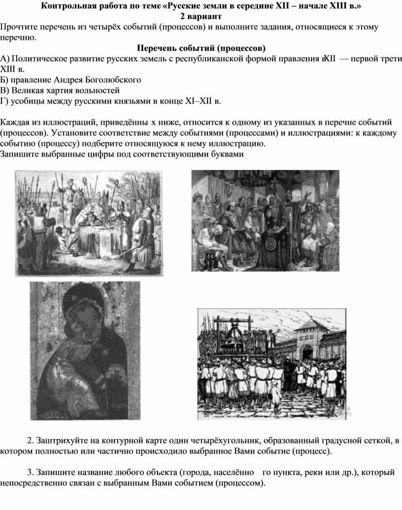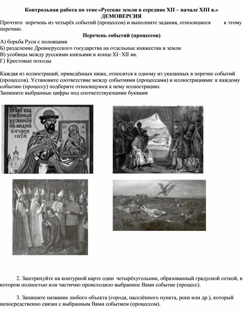 Контрольная работа по теме «Русские земли в середине XII – начале XIII в.»
