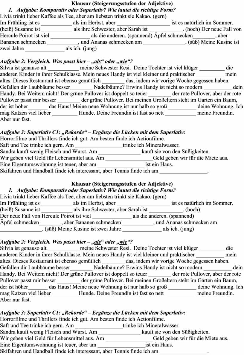 Klausur (Steigerungsstufen der Adjektive)