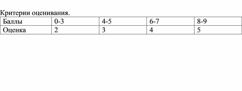 Критерии оценивания.