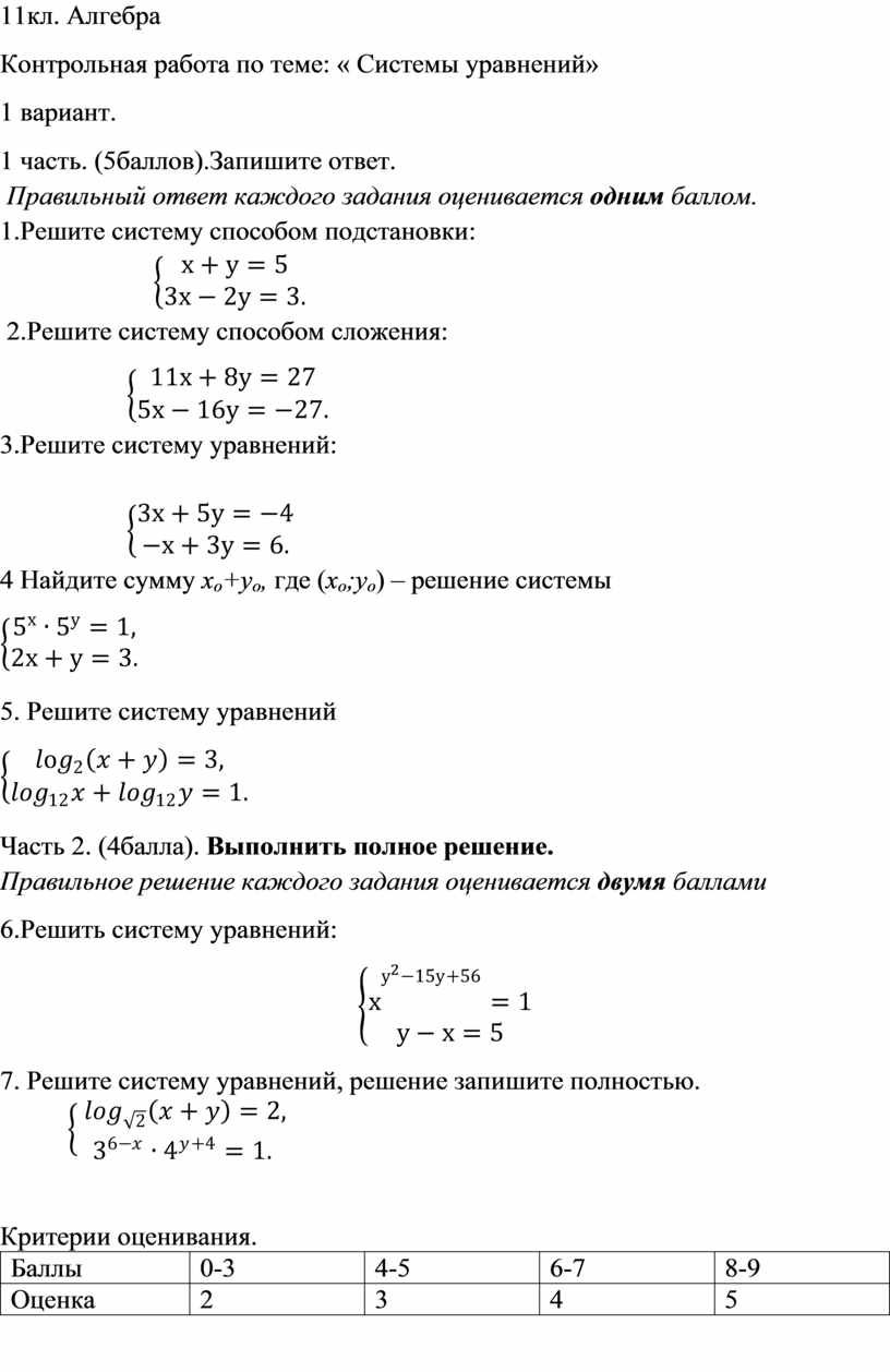 7. Решите систему уравнений, решение запишите полностью.