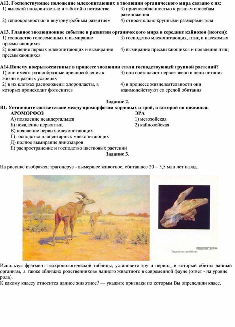 А13. Главное эволюционное событие в развитии органического мира в середине кайнозоя (неоген):