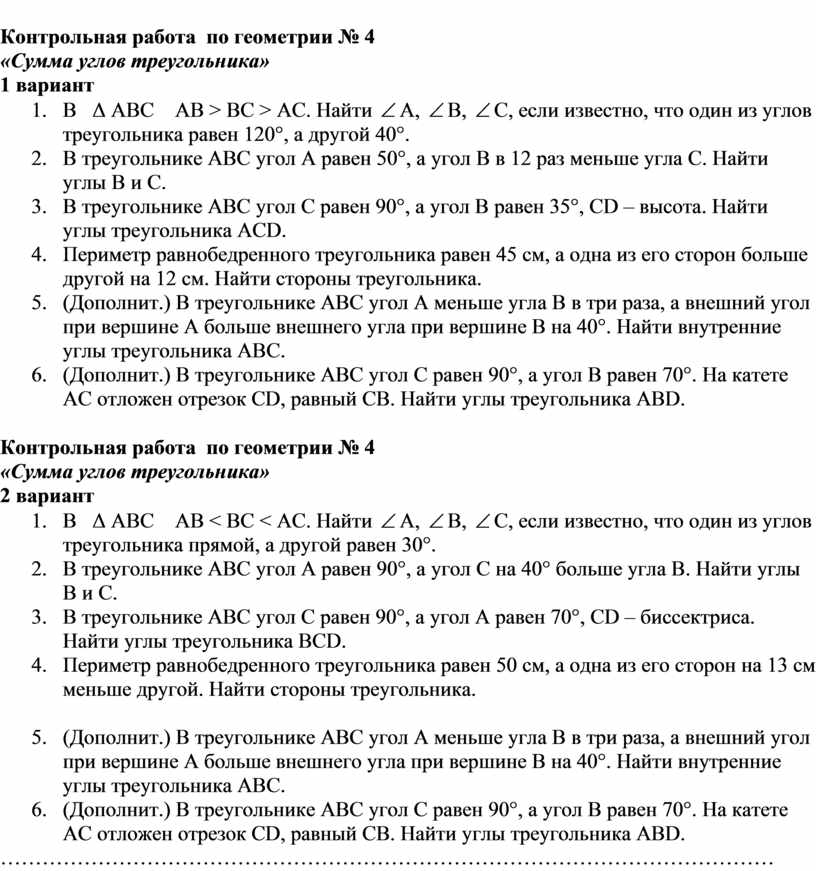 «Сумма углов треугольника»