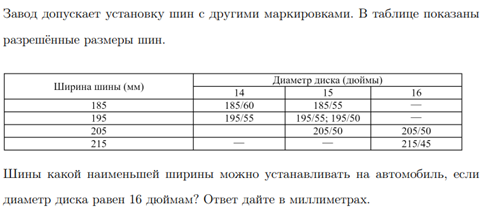 №3. Найдите диаметр колеса автомобиля, выходящего с завода. Ответ дайте в миллиметрах. 205/55 R16.