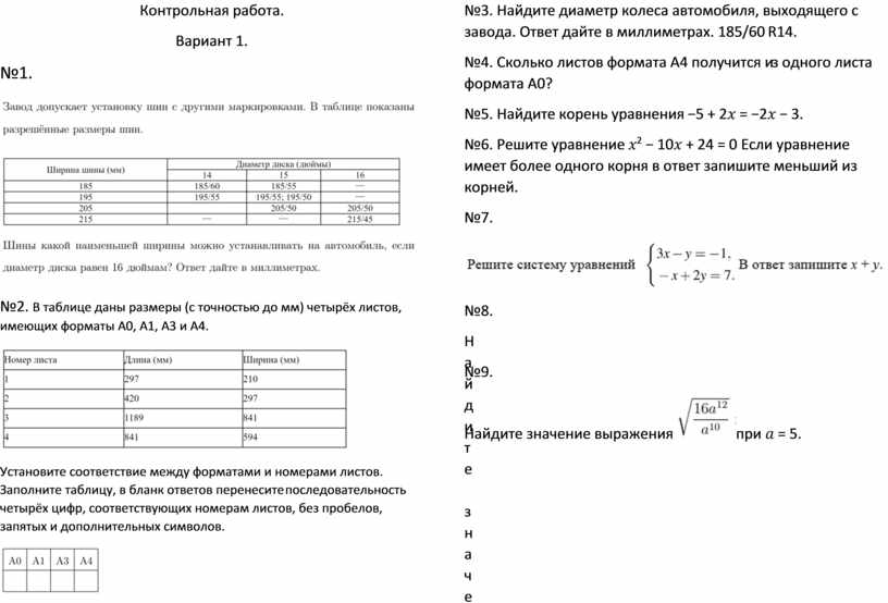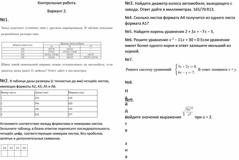 №3. Найдите диаметр колеса автомобиля, выходящего с завода. Ответ дайте в миллиметрах. 165/70 R13.