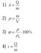 1. Определите максимально возможный КПД идеального теплового двигателя, если количество теплоты, отдаваемое нагревателем равно 500 Дж, а количество теплоты, получаемое холодильником — 300 Дж. 2. В каком агрегатном состоянии молекулы легко меняют своё место равновесия и скачком переходят в новое положение? 1) твёрдое состояние 2) жидкие кристаллы 3) жидкое состояние 4) газообразное состояние 3. Назовите процесс, при котором происходит испарение с поверхности твёрдых тел. 1) Кристаллизация 2) Кипение 3) Конденсация 4) Сублимация 4. Какая из формул выражает относительную влажность воздуха?