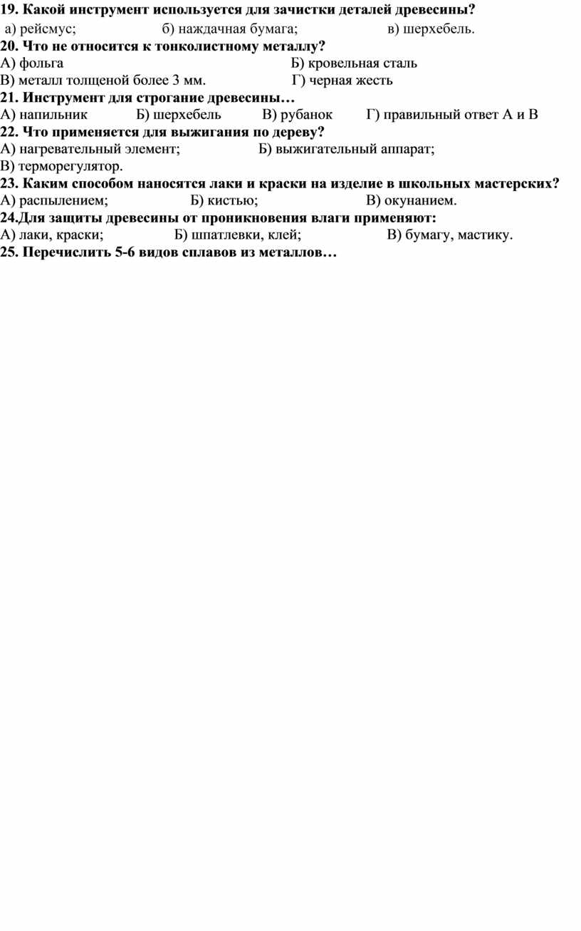 25. Перечислить 5-6 видов инструментов для ручной обработке древесины_______