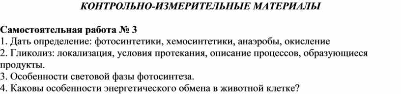 1. Дать определение: фотосинтетики, хемосинтетики, анаэробы, окисление