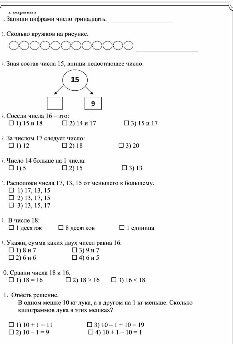 10. Проверочная работа по теме «Числа от 11 до 20. Нумерация»..29-30 стр.
