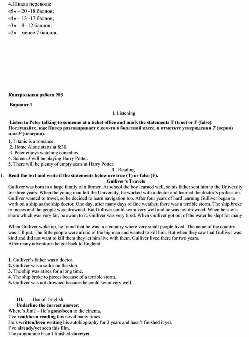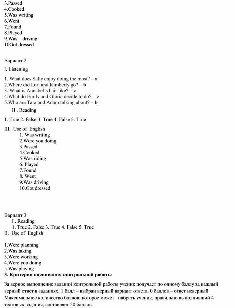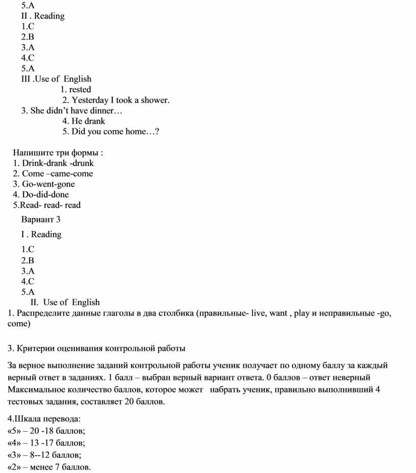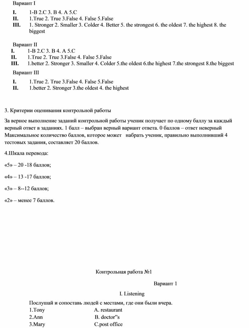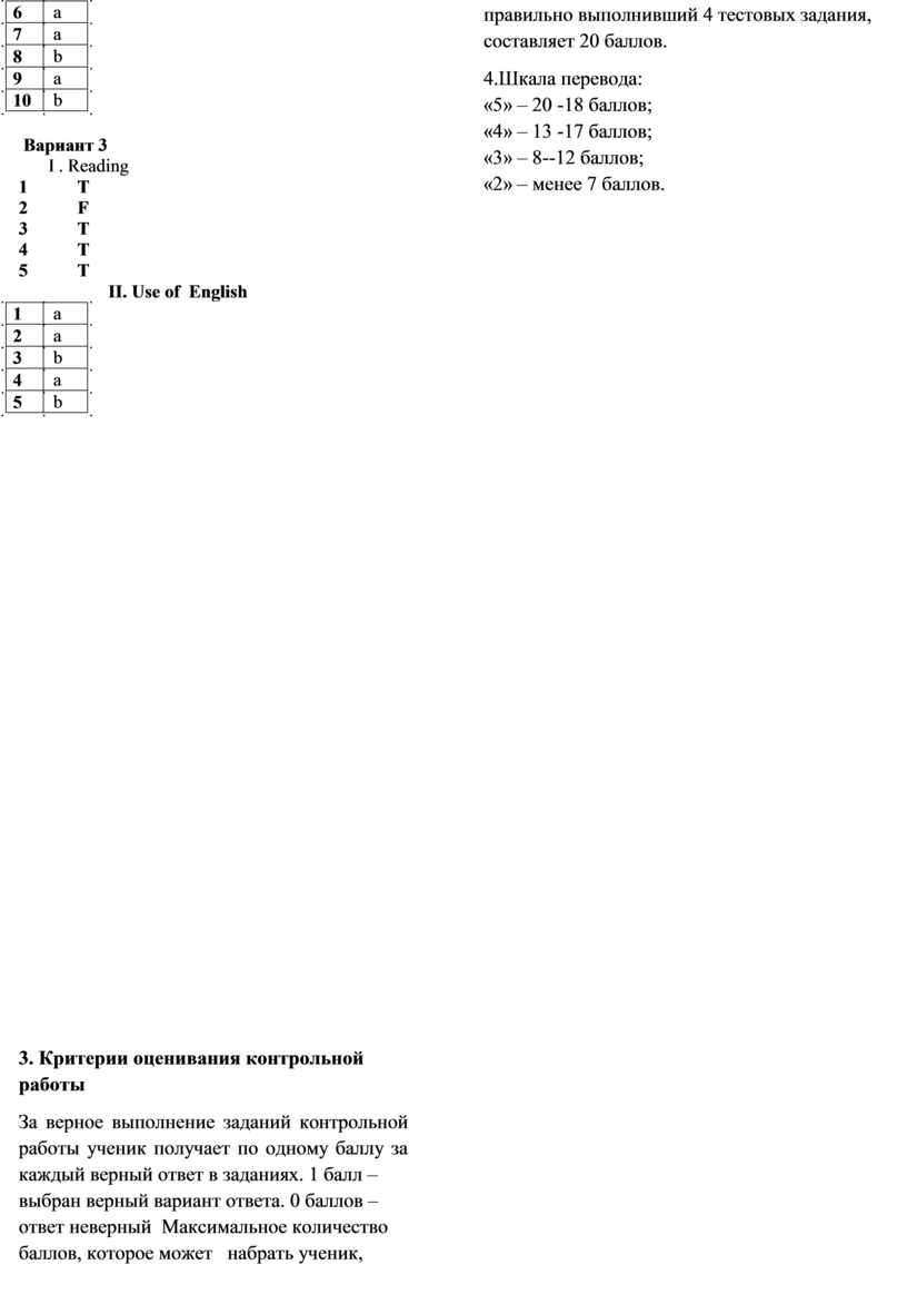 3. Критерии оценивания контрольной