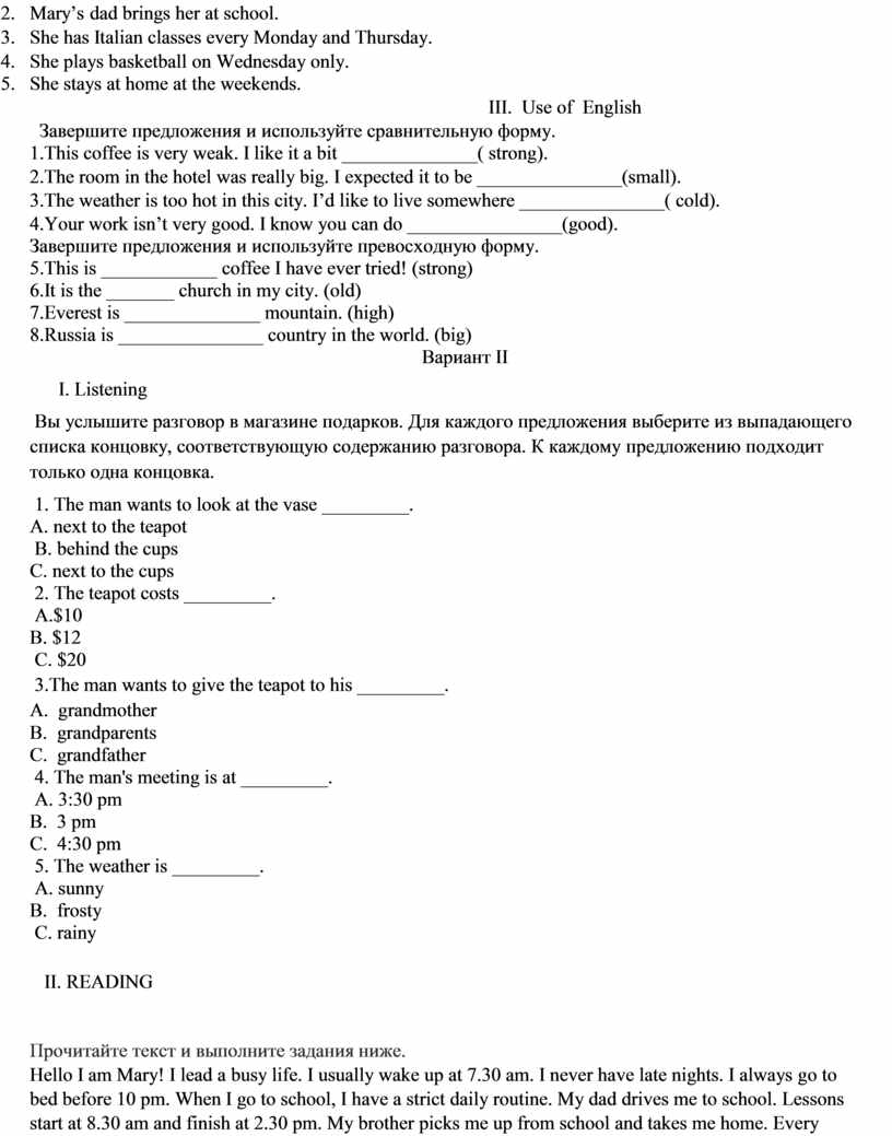 Вариант II